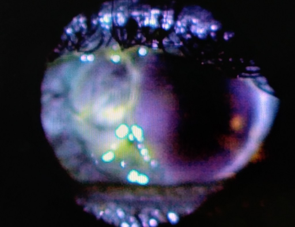 - Sikatrik kornea, vaskularisasi, atau perforasi
