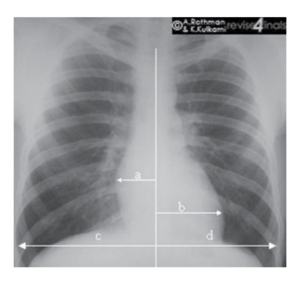 a. Ukuran : hitung CTR (evaluasi AP/PA, elevasi diafragma saat inspirasi, adanya massa)